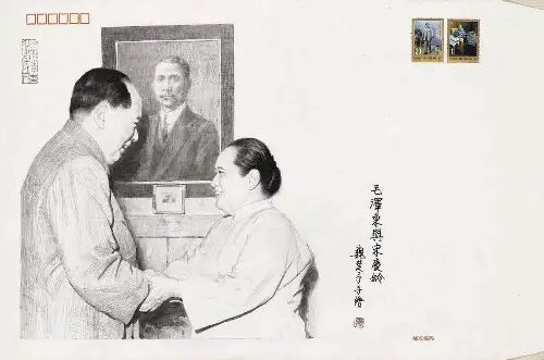 《毛泽东与宋庆龄》手绘封,是在国际享有极高声誉的著名画家、邮票设计家魏楚予先生首张毛泽东与宋庆龄(孙中山)大型手绘封。魏楚予先生的《求索》、《毛泽东在陕北》及《毛泽东在中南海》及毛泽东与外国领导人的作品已成为影响国内外的传世之作。
