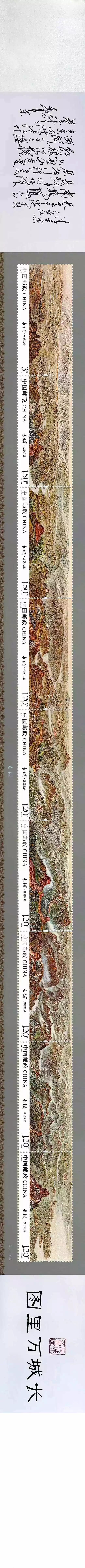 2.艺术价值:第一次采用九枚横连方式印制,“骨法用笔”进行描绘,浓郁的中国笔法、中国语言、中国精神来表达,设计名家荟萃,邮票与绘画、辞赋、书法、篆刻等艺术元素熔于一炉,诗书画印邮完美融合。